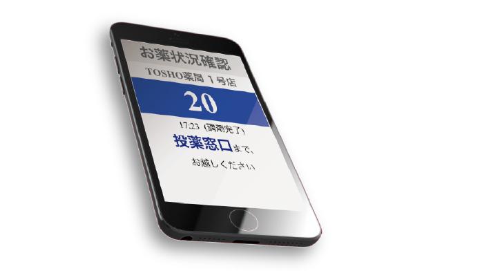 患者さまが自身のスマートフォンなどからお薬のできあがりを確認することができます。待ち時間を有効に使うことができ、患者さまの利便性向上や混雑緩和につながっています。