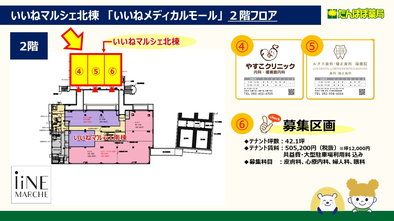 ●医療モールとしての視認性と認知度があり、駐車場205台も完備! ●1km以上の広域からの集患も期待できます。 ●2025年10月現在、耳鼻科、泌尿器科、循環器内科、歯科が盛業中。 ●残り1区画。早い者勝ちです!