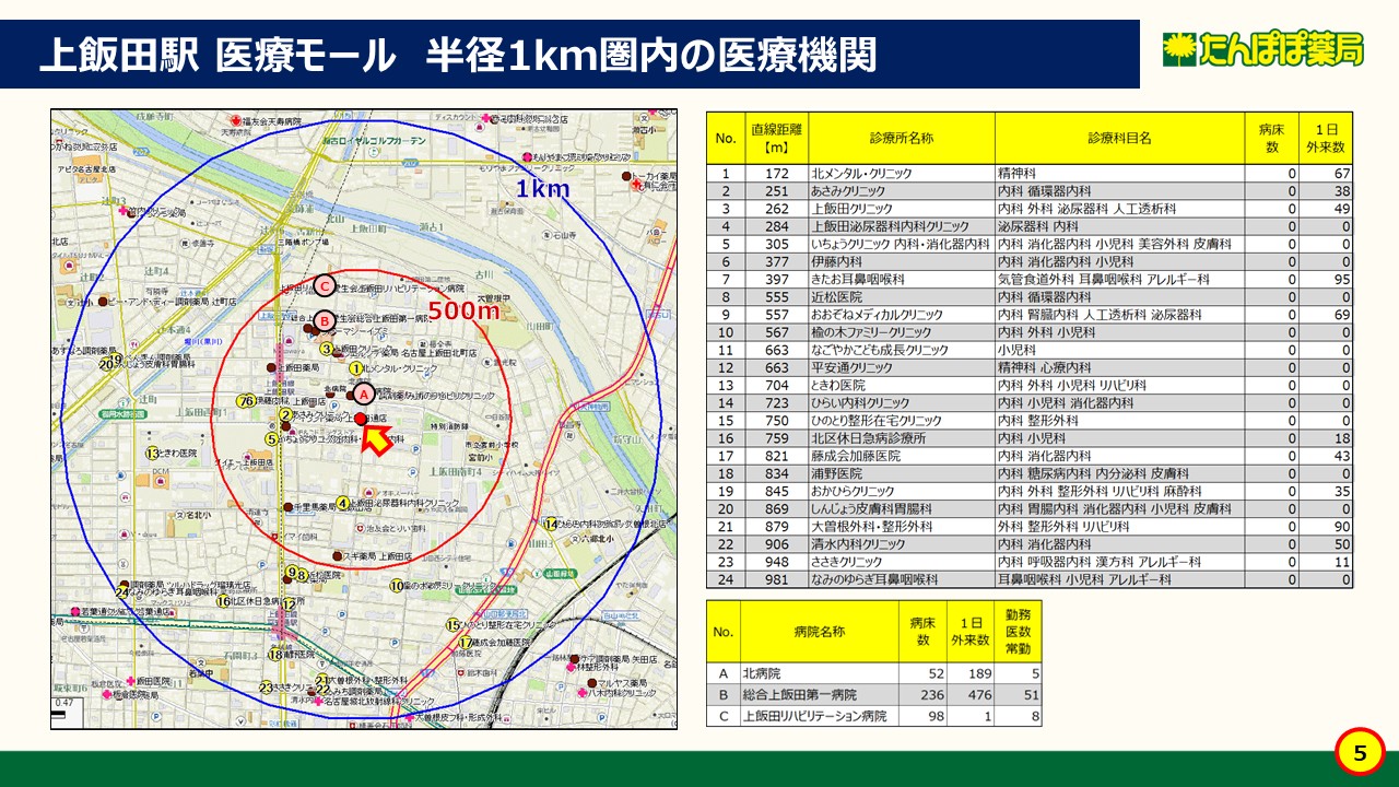 - 半径1kmの夜間人口が38,200人と非常に多い、名古屋市のベッドタウン。