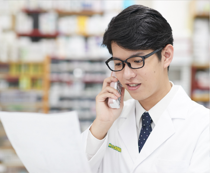 服薬指導の際にお聞きした服薬の様子やお薬手帳などから分かる受診状況をもとに、医療機関等と連携をとっています。緊急性に応じて、疑義照会(ぎぎしょうかい)やトレーシングレポート(服薬情報提供書)を活用し、患者さまが安心して服薬を継続できるようサポートしています。